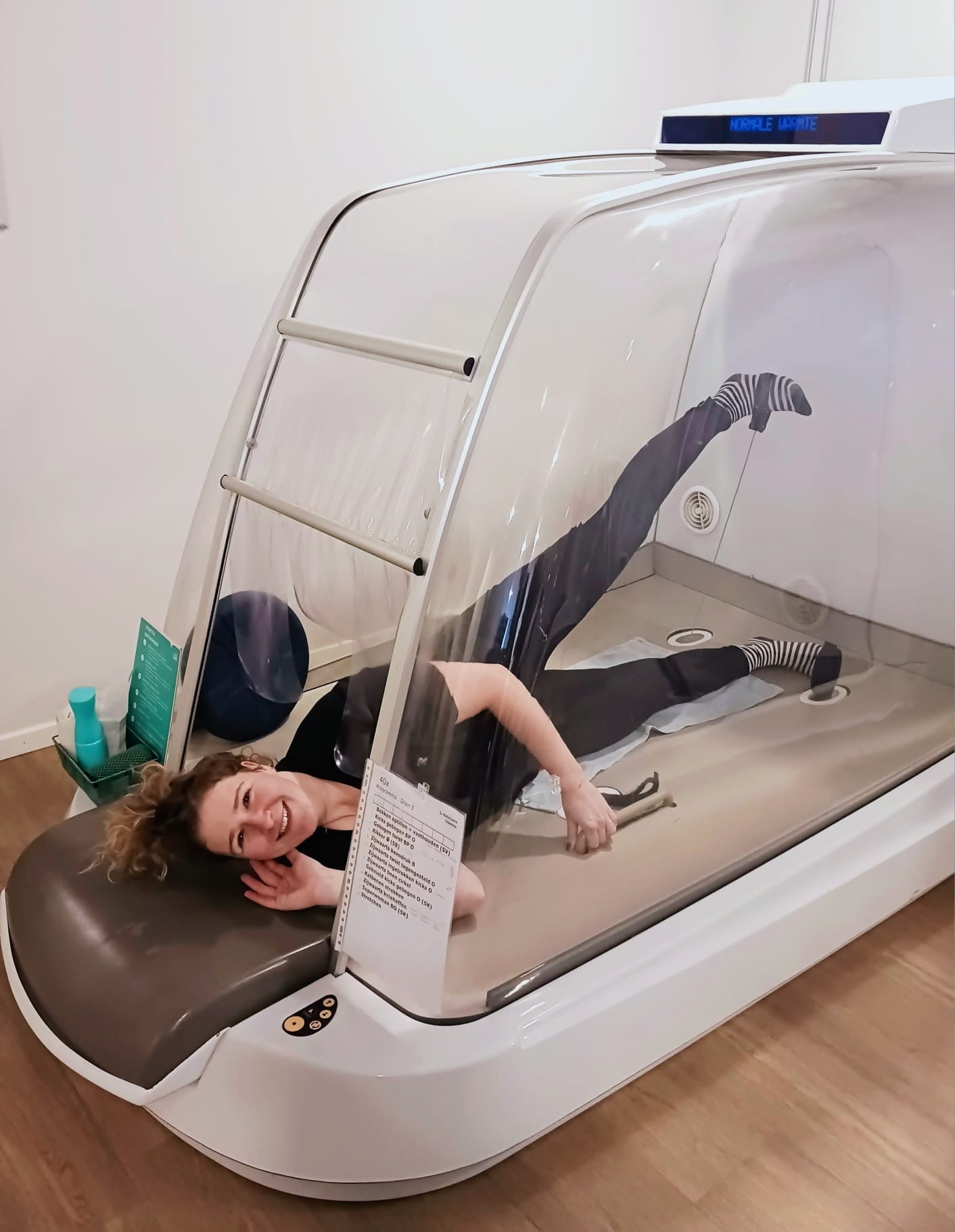 Je doet gerichte oefeningen in de cabine van 32°C warmte, onder begeleiding van een coach. De sportsessies duren 20 minuten.